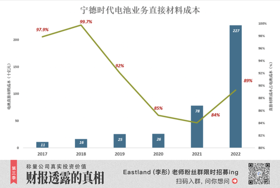 2018年,宁德时代电池产品直接材料成本为161亿,占电池成本的99.7%(总营收成本的83.6%)。