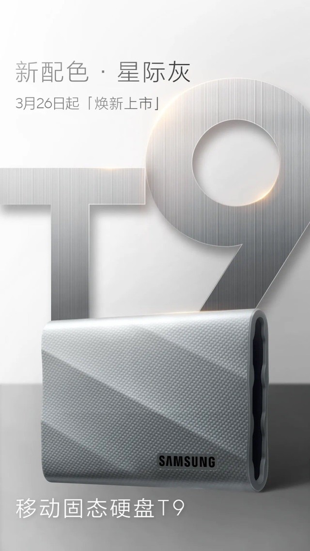 据三星电子官方微博消息,三星将在明天上架新款T9移动硬盘星际灰版。这款硬盘的主要特点包括“读写速度达到2000 MB/s”,并提供长达5年的保修服务。价格方面,1TB款售价为1059元,2TB款售价为1559元,4TB款售价为2729元。