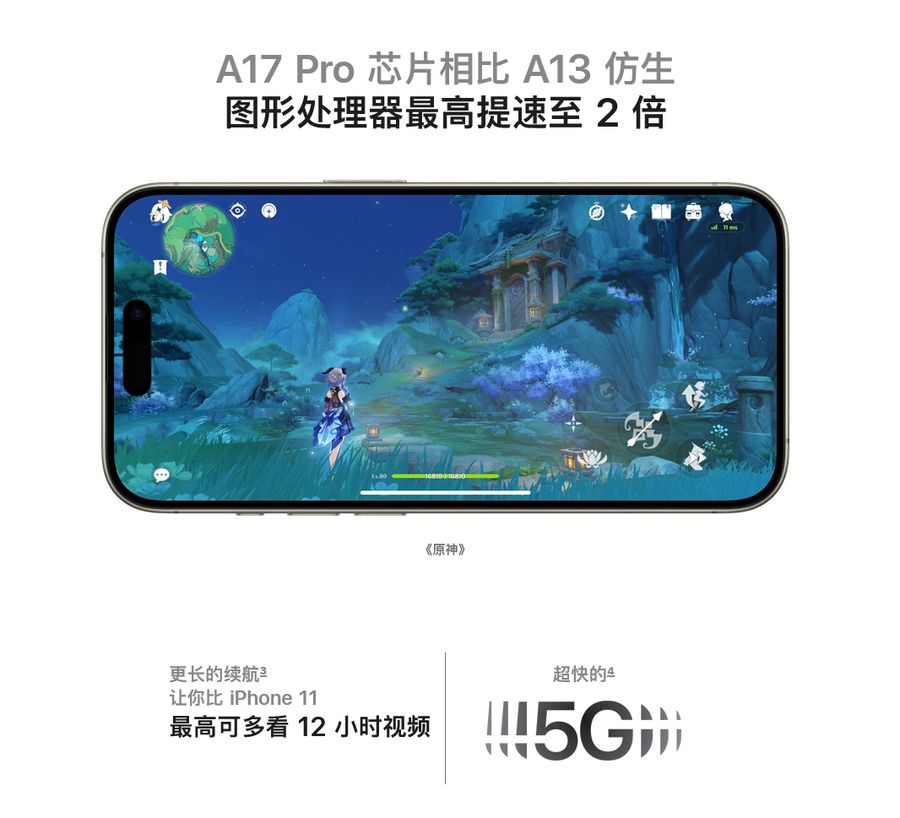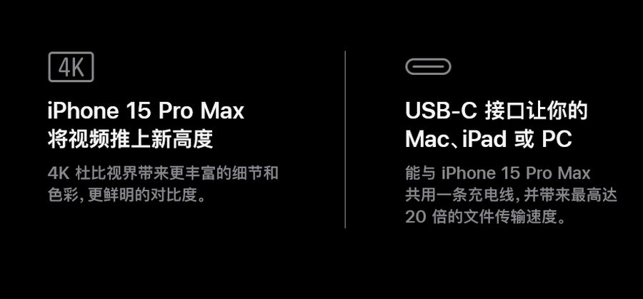每项对比都显示了旧款 iPhone 用户升级到 iPhone 15 系列后将获得哪些新功能。以 iPhone 11 为例,iPhone 15 的照片分辨率提高了 4 倍、基本存储空间更大、拍摄视频支持 Action 和 Cinematic 模式、改用 USB-C 接口、GPU 快 60%、5G 等。