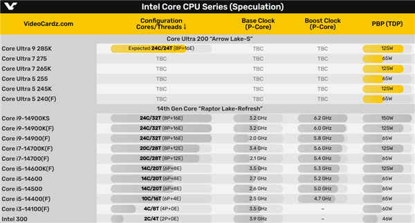另外,一如现在,下一代的酷睿Ultra也不会有3系列,无论桌面还是笔记本。