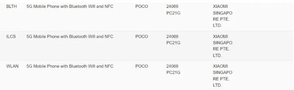 小米POCO F6在新加坡IMDA认证数据库的型号显示为“24069PC21G”。根据先前的泰国NBTC数据库记录,已经确认这一型号确实属于小米POCO F6。