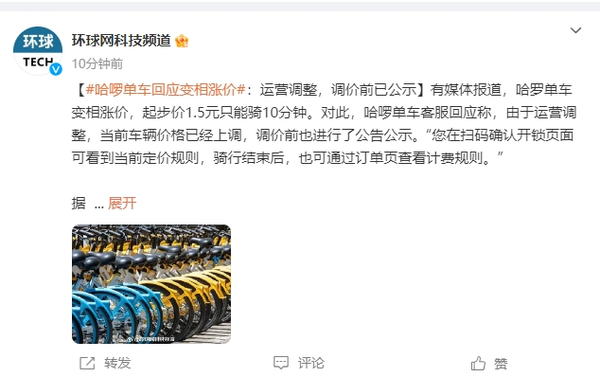 哈啰单车客服回应变相涨价:运营调整 调价前已公示